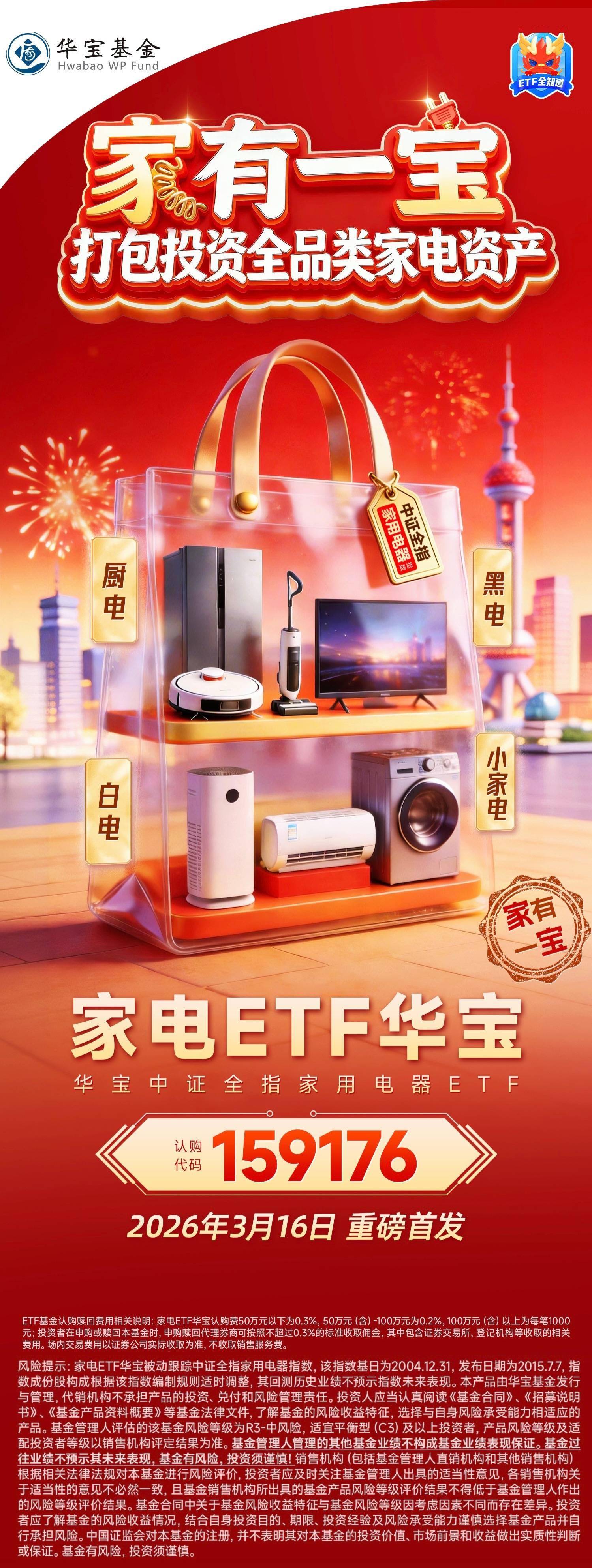家电ETF华宝(159176)是华宝基金这个“千亿权益ETF俱乐部”成员,在行业主题ETF领域的又一布局落子,进一步满足广大投资者愈加多元化的投资需求。