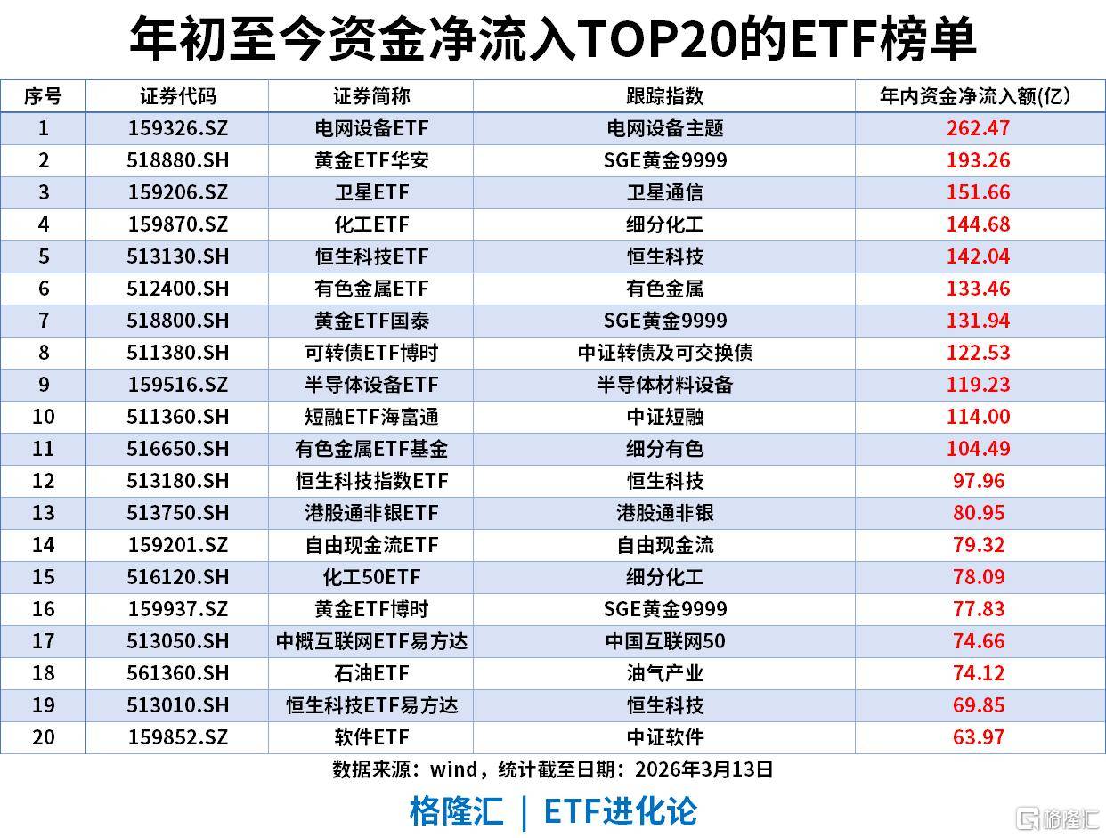 年初至今ETF资金净流入TOP20(截至2026-03-13)