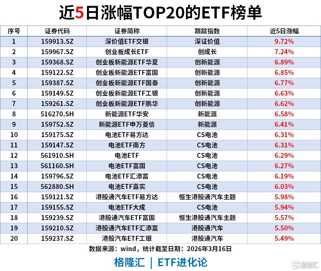 近5日涨幅TOP20ETF(截至2026-03-16)