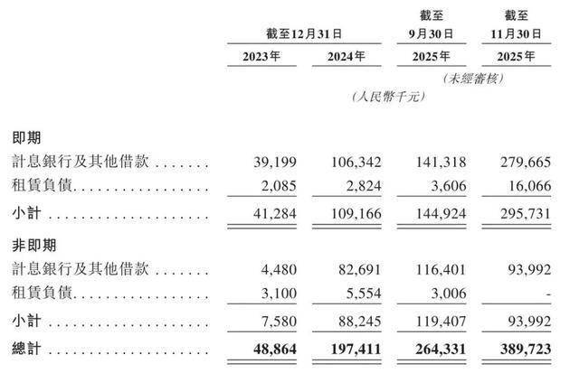 截止2025年9月末,伯镭科技的银行及其他借款为2.58亿元,至11月末增至3.74亿元,较2023年末翻了8.55倍。