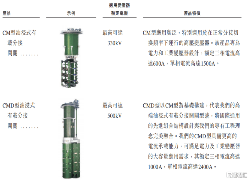 产品举例:油浸式有载分接开关产品,来源:招股书
