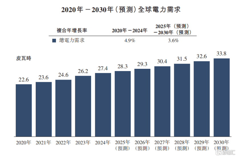 2020年至2030年的全球电力需求,来源:招股书