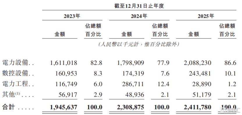 2025年,数控设备业务收入占比为10.1%。而电力工程业务的收入占比则由2024年的12.4%下降至2025年的1.2%。