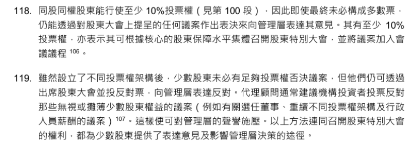 2.关于小股东权益:即使投票权比例提高到20:1,普通股股东仍持有至少10%的总投票权,有权召开股东特别大会并提出议案。截至2025年底,香港市场不同投票权公司数量仅占整体的1.2%,并未泛滥。