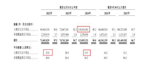 为抢占市场,奕斯伟计算采取“以价换量”策略,人机交互芯片销量从2022年的6944万件增至2024年的1.11亿件,但平均售价从23.8元/片降至15.3元/片,直接影响了整体盈利能力。