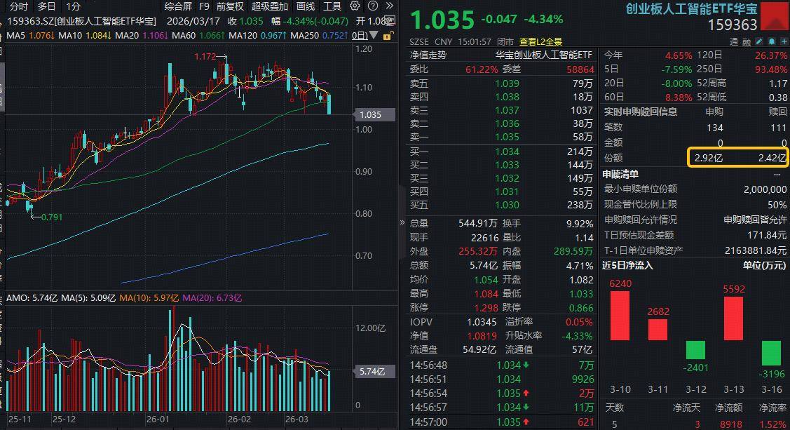 二、天孚通信跳水超10%,算力赛道意外重挫!华宝基金创业板人工智能ETF大跌4%引资金抢筹!市场错杀?