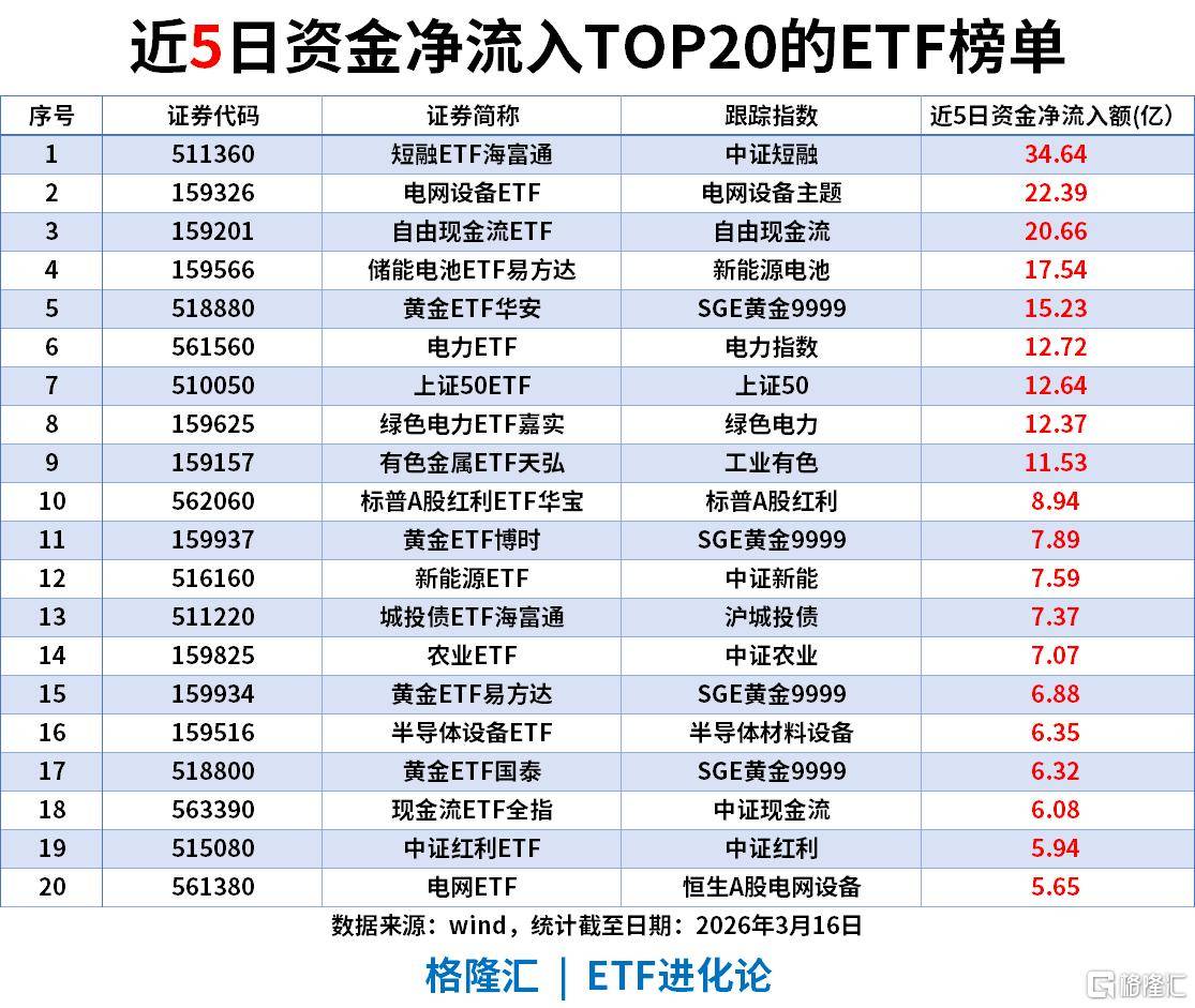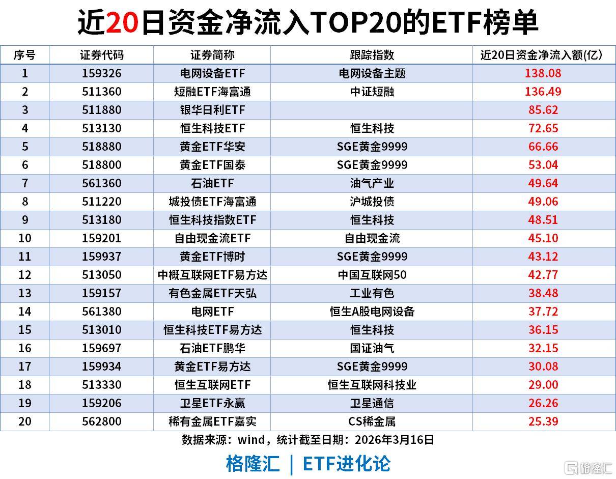 电网设备ETF(159326):近5日流入22.39亿,近20日累计流入竟高达138.08亿。