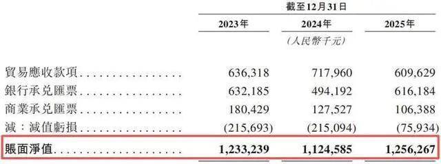 各报告期末,华明装备的贸易应收款项及应收票据,分别为12.33亿元、11.25亿元、12.56亿元。