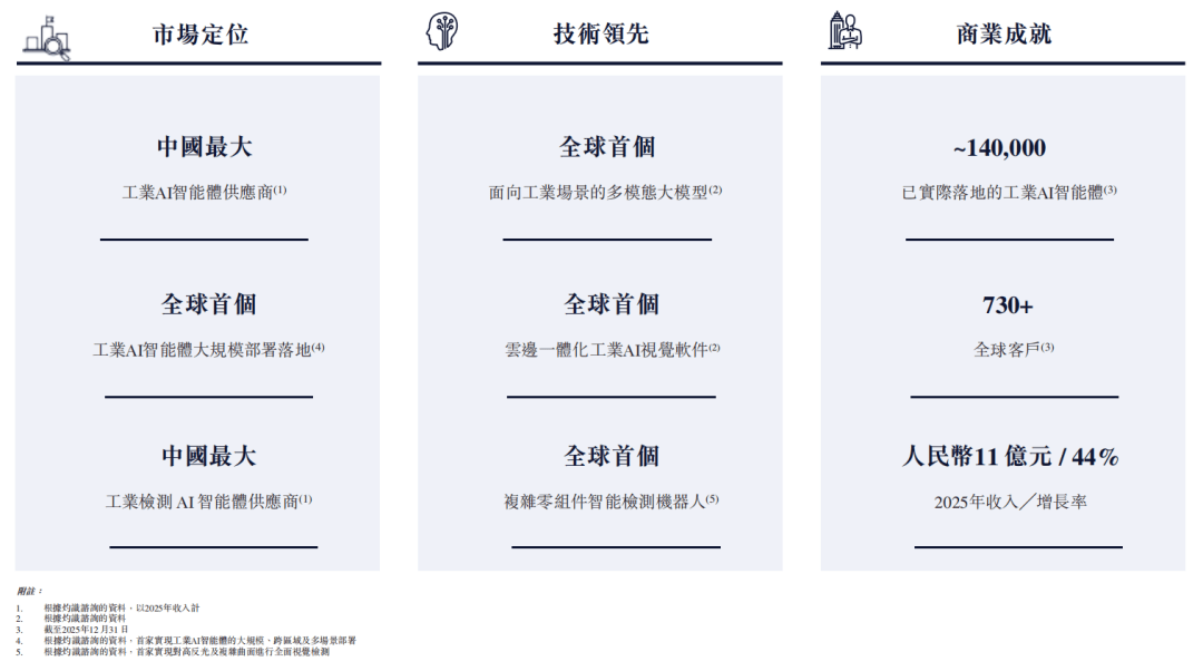 当前,工业AI正从单点应用向系统级部署跨越,竞争聚焦技术体系、规模能力与全球化布局。作为“工业智能体第一股”冲刺者,思谋的稀缺性尤为凸显:在多个细分市场占据份额领先位置,盈利质量持续领跑验证商业模式,叠加政策东风释放,让其在赛道中具备了独特的竞争优势。在港股AI板块愈发看重“技术落地+现金流稳定”的估值溢价逻辑下,思谋既规避了通用大模型的盈利不确定性,又手握全球制造业智能化升级的万亿级市场红利。