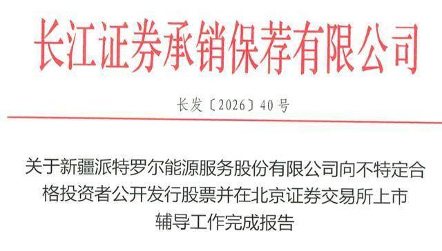 瑞财经 严明会 近日,新疆派特罗尔能源服务股份有限公司(以下简称:新派能源)在新疆证监局披露IPO辅导验收报告,拟北交所上市,辅导机构长江保荐。