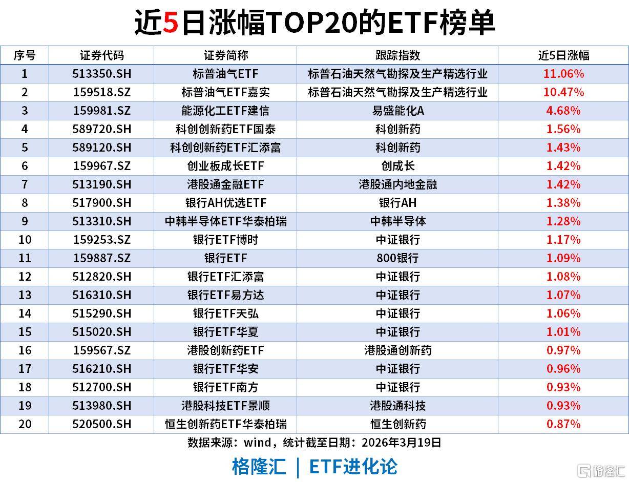 近5日涨幅TOP20ETF(截至2026-03-19)