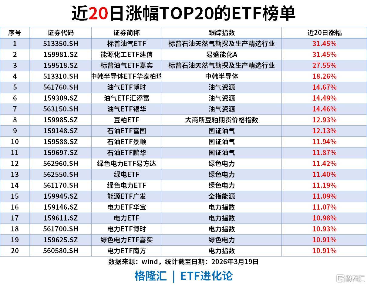 近20日涨幅TOP20ETF(截至2026-03-19)