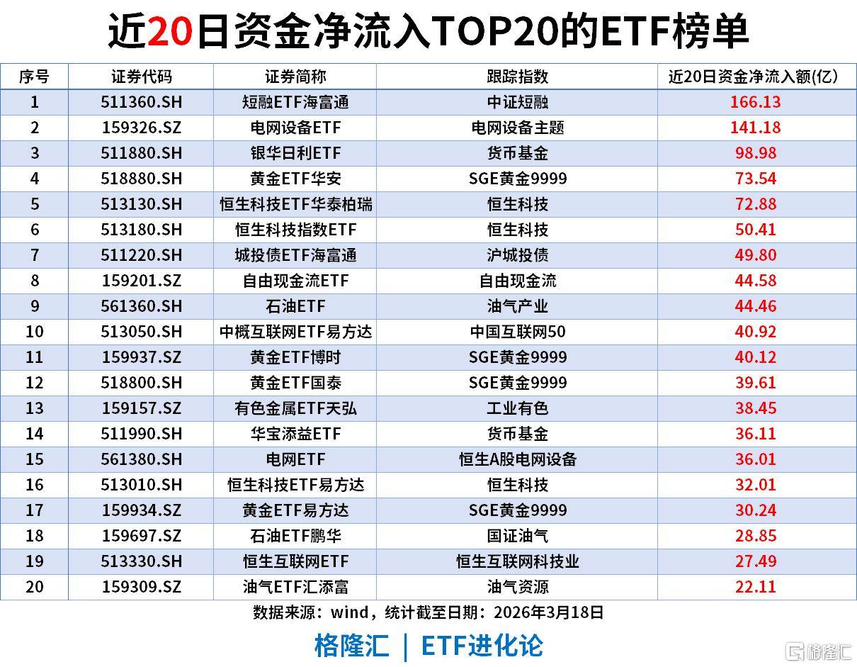 近20日ETF资金净流入TOP20(截至2026-03-18)