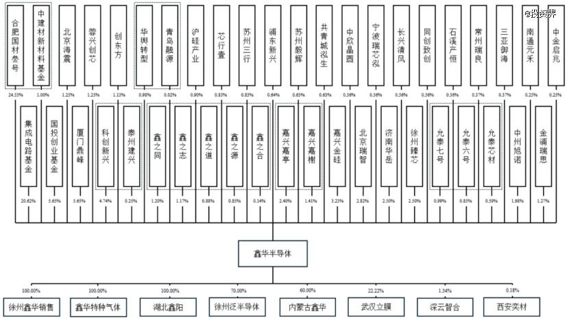 近两年,鑫华半导体无控股股东且无实际控制人,第一大股东合肥国材叁号及其一致行动人中建材新材料基金持股比例合计为25.55%,第二大股东集成电路基金持股比例为20.62%。