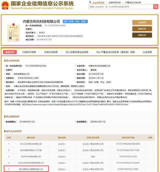 资料显示,利元科技位于内蒙古自治区阿拉善盟阿拉善腾格里经济技术开发区,专注于染料中间体研发和新型化工材料研发、生产与销售,拥有危险化学品生产资质。公司由浙江、湖北等企业共同出资,于2014年收购原丽源(内蒙古)科技有限公司的存量资产,重新启动已批复的精细化工建设项目,并新建增部分产品而来。公司注册资本3亿元,项目总投资7.7亿元,占地面积558亩,年产能3.2万吨。