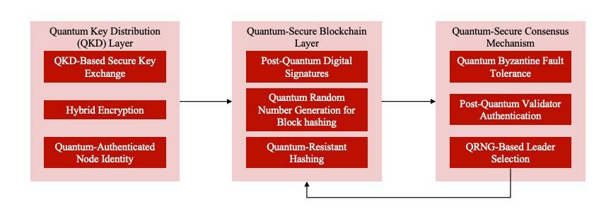 微算法科技抗量子区块链技术是一套以抗量子安全为核心的全栈式架构,通过整合量子密钥分发(QKD)、抗量子区块链层与抗量子共识机制三层组件,将量子安全技术深度融入区块链的每一个环节。其核心逻辑是:利用量子物理特性构建不可破解的密钥交换通道,结合后量子密码学算法强化数据加密与签名,再通过量子随机数生成与优化后的共识协议确保网络运行的公平性与不可篡改性。这一架构并非简单叠加量子技术与区块链,而是从底层重新设计安全模型,使区块链在量子环境下仍能保持数据机密性、完整性与可用性。