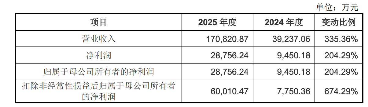 从财务数据来看,宇树科技业绩呈爆发式增长态势。2025年度,公司实现营业收入170,820.87万元,同比增长335.36%;扣除非经常性损益后归母净利润为6亿元,同比增长674.29%。公司由此跻身为国内极少数同时实现规模收入与实质性盈利的通用机器人企业之一。