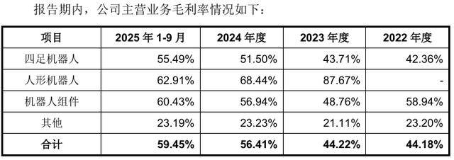 毛利层面,宇树科技毛利率从2022年的44.18%一路攀升至2025年1-9月的59.45%。核心零部件全栈自研的效果,直接体现在成本端。自研电机、减速器、激光雷达,不仅降低了外采成本,也让产品迭代不受制于供应商。