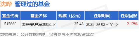 沈晔女士:中国国籍,硕士研究生。2018年4月加入国联安基金管理有限公司,历任助理研究员、投资助理、研究员、基金经理助理。2025年9月2日起担任国联安沪深300交易型开放式指数证券投资基金基金经理。