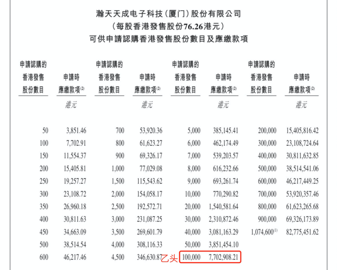 瀚天天成本次IPO发行股份占全部股份比例的5.05%,按招股价76.26港元算,募资16.4亿港元,厦门国资站台基石锁定了7.8亿,剩余流通盘8.6亿。