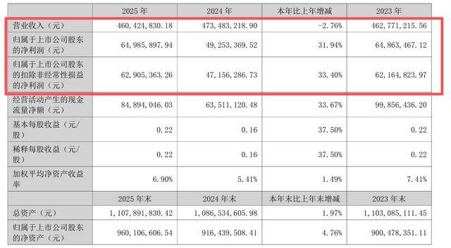 3月20日晚间,黄山胶囊(002817)发布2025年年度报告,公司实现营业收入4.6亿元,同比下降2.76%;归母净利润为6498.59万元,同比增长31.94%;扣非净利润为6290.54万元,同比增长33.4%。