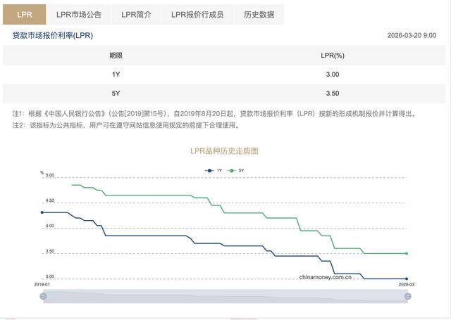 3月20日,最新贷款市场报价利率(LPR)报价出炉。其中,1年期LPR为3.00%,5年期以上LPR为3.50%,均与上月持平。这是自2025年5月两个期限LPR各下降10个基点之后,LPR连续10个月“按兵不动”。