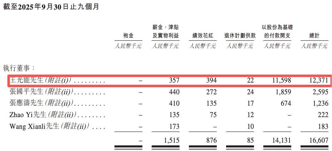 仅就2025年前三季度而言,王光能从华沿机器人取得的薪酬合计约1237.1万元,其中“以股份为基础的付款”约为1159.8万元,远高于其他董高监成员。