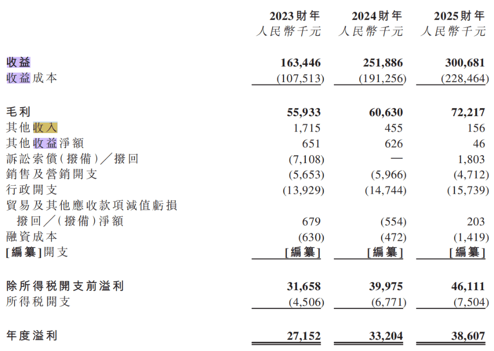 2023年至2025年,圣火控股分别实现收入1.63亿元、2.52亿元、3.01亿元,录得净利润2715.2万元、3320.4万元、3860.7万元。