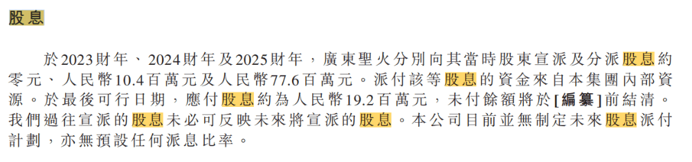 2024年和2025年,圣火控股分别宣派及分派股息1040万元和7760万元,累计宣派及分派股息8800万元,占近三年净利润总额的比例高达88.92%。按照最新持股比例折算,实控人夫妇至少分得股息6500万元。