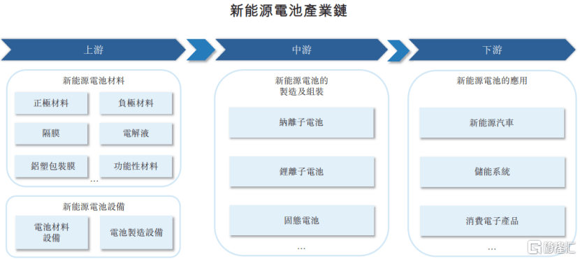 按下游应用领域划分,新能源电池可分为储能电池、动力电池、消费电池。