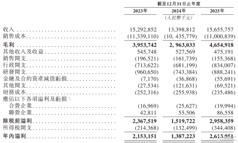 值得注意的是,2023年至2025年,公司的研发开支从约9.61亿元降至8.88亿元,有下滑趋势。