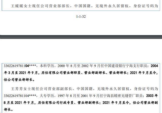 值得注意的是,在上会稿中披露了王媛媛、王芳芳的基本情况,而在申报稿中仅披露了两人担任的职务。