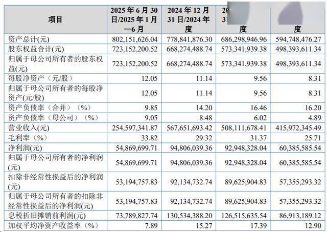 业绩方面,2022年至2025年,永励精密营业收入分别为4.16亿元、5.08亿元、5.68亿元和5.4亿元;归属于母公司股东净利润为6038.56万元、9294.83万元、9480.60万元和1.09亿元。