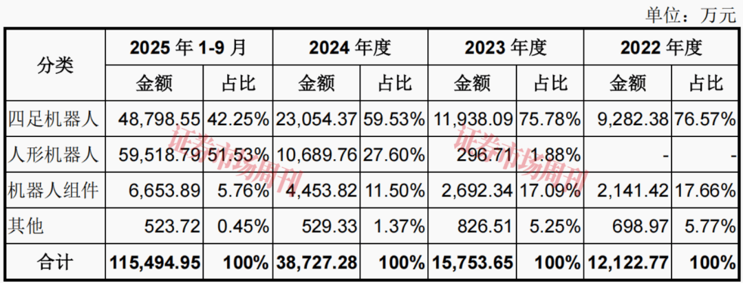 附表:宇树科技主营业务收入构成