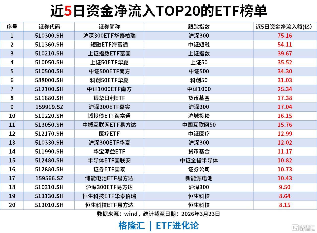 近5日资金净流入(截至2026-03-23)