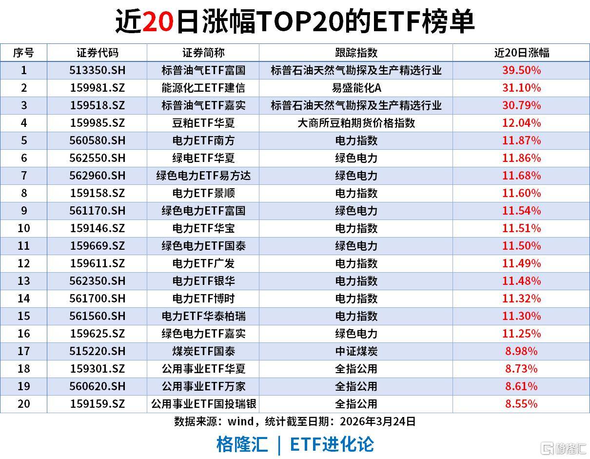 近20日涨幅(截至2026-03-24)