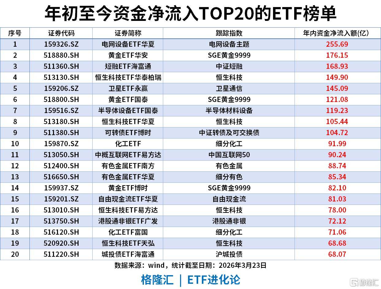 年初至今资金净流入(截至2026-03-23)