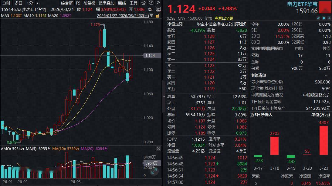 三、算电协同+能源替代双轮驱动,电力爆发涨停潮!华宝基金电力ETF(159146)大涨近4%,资金连续抢筹!