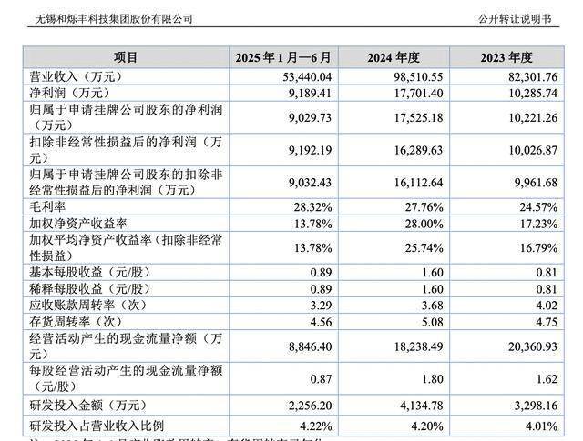 业绩方面,2023年-2024年及2025上半年,和烁丰实现营收分别为8.23亿元、9.85亿元、5.34亿元;归母净利润分别为1.02亿元、1.75亿元、9029.73万元。可见,2024年其营收同比增长19.7%。
