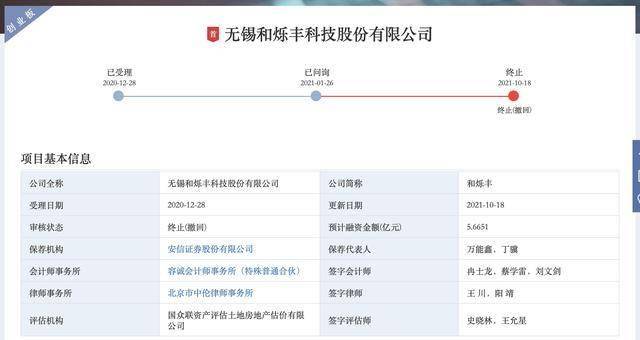 值得注意的是,和烁丰曾冲击创业板。其IPO申请于2020年12月28日获受理,后因撤回申请,IPO于2021年10月18日终止,彼时的保荐机构为安信证券股份有限公司。