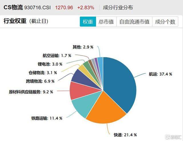 物流ETF跟踪中证现代物流指数,覆盖航运、快递、铁路运输等细分领域,核心权重股包含中远海控、顺丰控股、招商轮船、中远海能、圆通速递等公司。
