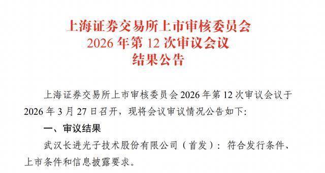 瑞财经 刘治颖 3月27日,据上交所,武汉长进光子技术股份有限公司(以下简称:长进光子)(首发)符合发行条件、上市条件和信息披露要求