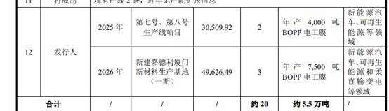 与行业收缩形成鲜明对比的是嘉德利的“激进扩产”。嘉德利目前已投产8条生产线,且正处于产能集中投产阶段,不仅有已转固的7、8号生产线,还有在建的9、10号生产线及厦门新材料生产基地(一期)项目,甚至还有未在招股书中披露的1、2号线扩建项目,扩产动作密集且高调。