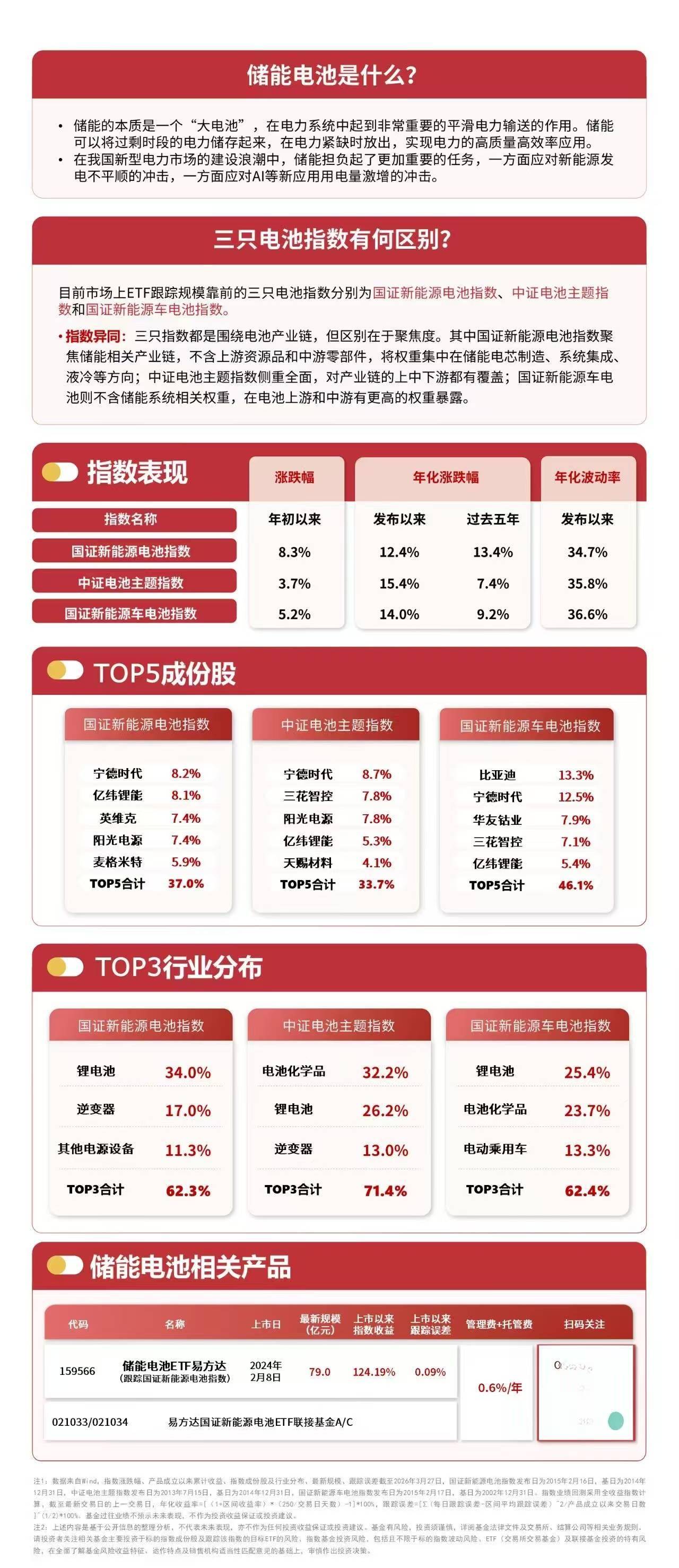3月30日早盘,大盘低开高走,此前较为抗跌的新能源赛道补跌,截至午间收盘,国证新能源电池指数下跌1.3%。资金近日持续加码相关ETF,截至3月27日,储能电池ETF易方达(159566,联接基金A/C:021033/021034)3月累计净流入超30亿元,其中上周净流入超10亿元、居股票型ETF第一。