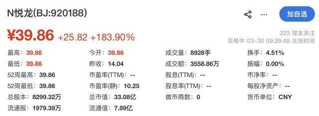 瑞财经 吴文婷3月30日,悦龙科技(920188.BJ)在北交所挂牌上市,保荐机构为中泰证券。其开盘报39.86元,涨183.9%,总市值约33.08亿元。