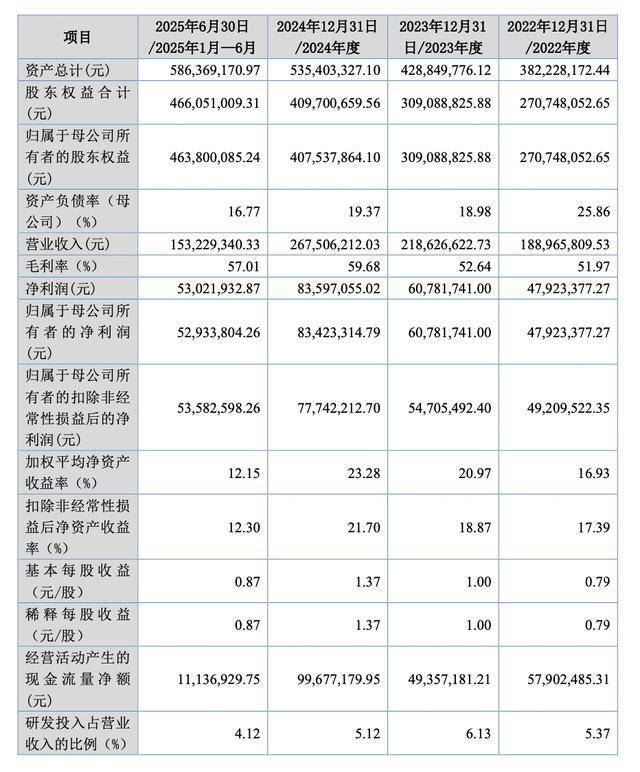 据招股书,2022年-2024年及2025上半年,悦龙科技实现营收分别为1.89亿元、2.19亿元、2.68亿元、1.53亿元;归母净利润分别为4792.34万元、6078.17万元、8342.33万元、5293.38万元。
