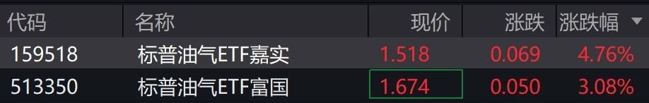 受盘面影响,标普油气相关ETF涨超3%。