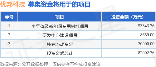 证券之星消息,东莞优邦材料科技股份有限公司(简称:优邦科技)拟在深交所创业板上市,募资总金额为8.05亿元,保荐机构为申万宏源证券承销保荐有限责任公司。募集资金拟用于半导体及新能源专用材料项目、研发中心建设项目、补充流动资金,详见下表:
