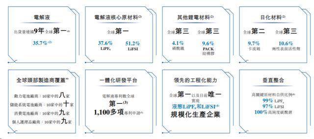 根据灼识咨询的资料,自2016年起,天赐材料连续九年位居全球电解液出货量第一,2024年全球市场份额达到约35.7%。