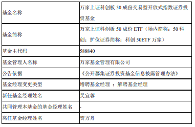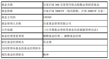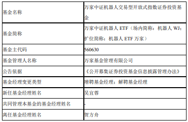 中国经济网北京3月30日讯 近日,万家基金公告,万家沪深300ETF、万家上证科创板50成份ETF、万家中证机器人ETF增聘吴宜蓉。